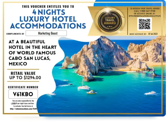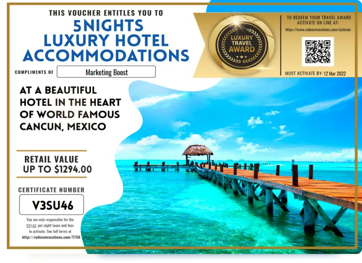 🌍 Winners will get from 3 to 7 nights in one of our Top 10 Destinations. You can choose from Cancun, Puerto Vallarta, Nuevo Vallarta, Mazatlán, and Acapulco Mexico as well as Las Vegas, Dubai, Bali, or Phuket Thailand.